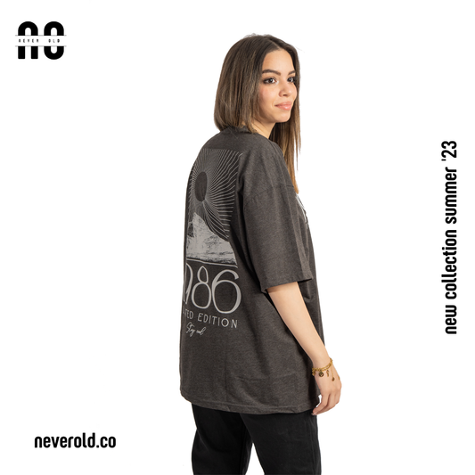 Gray wide leg basic Pants with Never old print in front